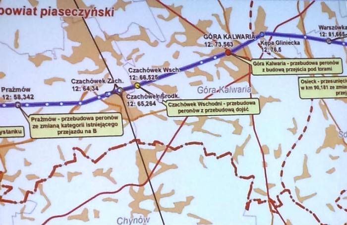 Podczas spotkania przedstawiciele PLK S.A. przedstawili mapę planowanych obiektów infrastruktury pasażerskiej, na której uwzględniono przedstawiane przez naszych mieszkańców postulaty budowy peronów w Nowym Prażmowie, Tarczynie, Czachówku Wschodnim i Górze Kalwarii.