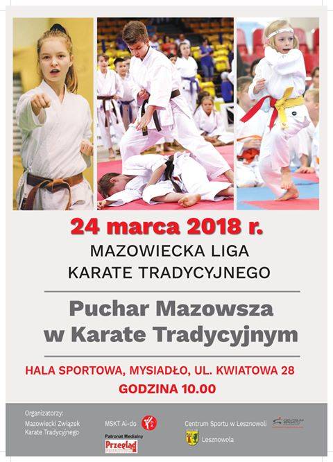 25 marca, odbędzie się Puchar Mazowsza w Karate Tradycyjnym. W zawodach wystartuje prawie 300 zawodników z całego województwa mazowieckiego, w tym 82 osoby z Piaseczna i okolic. Są to dzieci i młodzież w wieku 7-17 lat. Zawodnicy startują w konkurencjach indywidualnych i drużynowych. Zawody odbędą się w hali sportowej w Mysiadle ul. Kwiatowa 28. Rozpoczną się o godz. 10.00