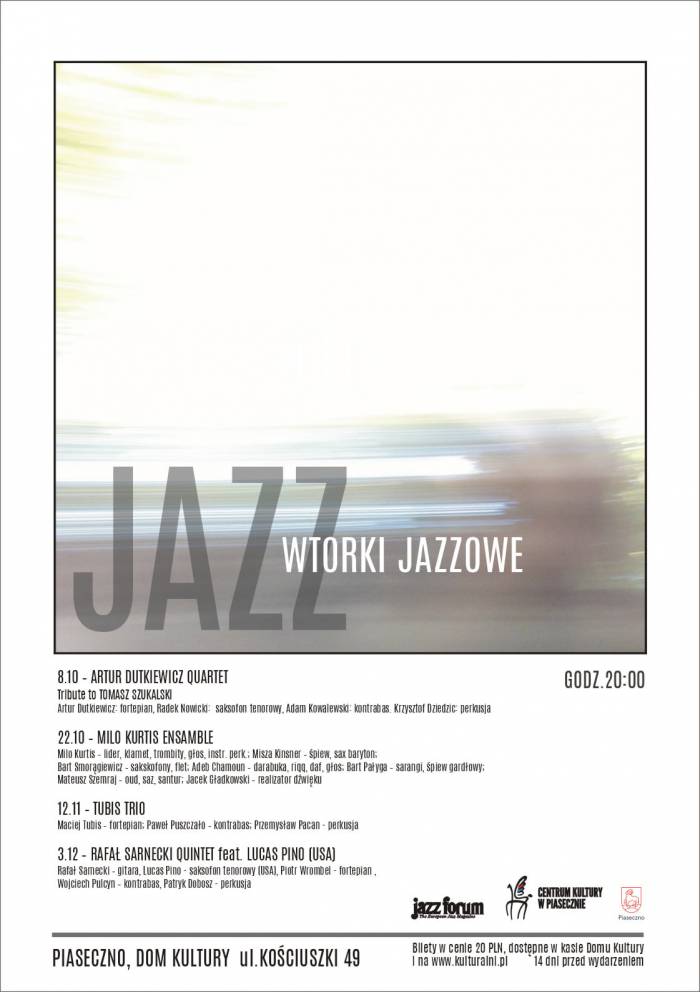 3 grudnia o godz. 20.00 wystąpi Rafał Sarnecki Quartet feat. Lucas Pino (USA). Miejsce: Sala Domu Kultury w Piasecznie, ul. Kościuszki 49. Bilety w cenie 20 PLN.
