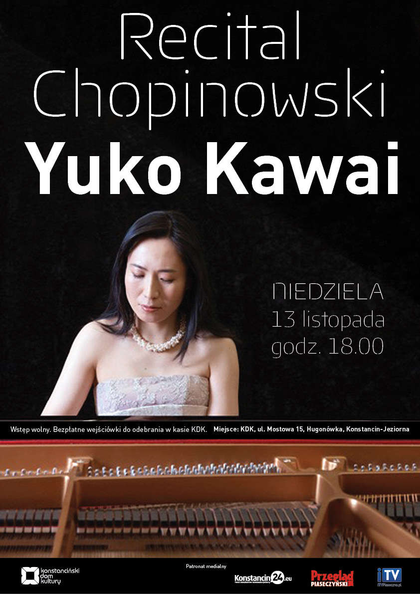 13 listopada o godz. 18.00 odbędzie się Recital Chopinowski Yuko Kawai. Miejsce: KDK Hugonówka, ul.Mostowa 15.
