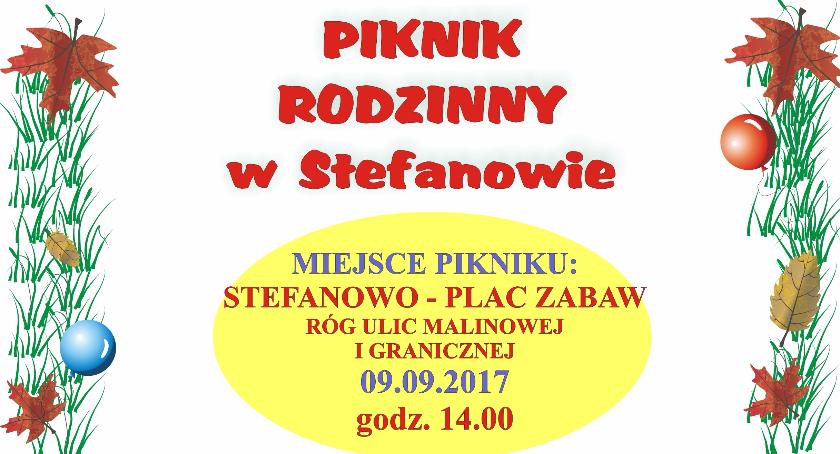 09.09.2017 r. godz. 14.00 - Sołecki Piknik Rodzinny na placu zabaw na rogu ulic Granicznej i Malinowej, Stefanowo. Zapraszają Organizatorzy: Radny, Sołtys i Rada Sołecka Stefanowa.
