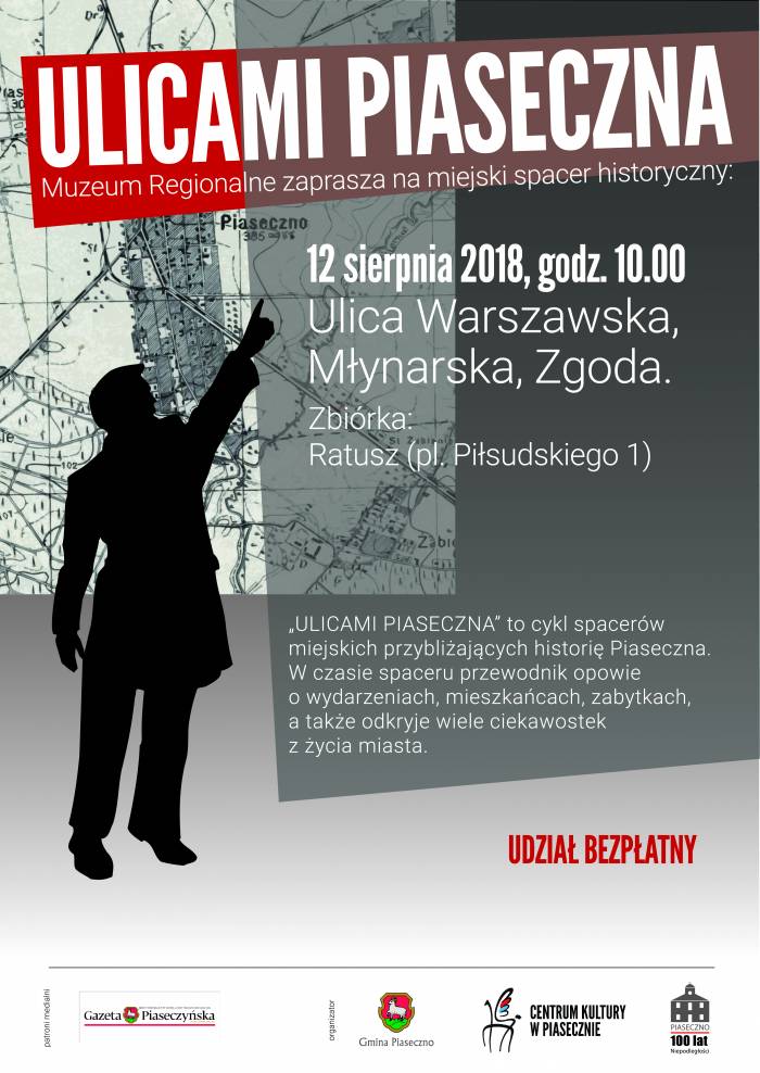 12 sierpnia odbędzie się kolejny spacer historyczny ulicami Piaseczna.Tym razem odkryjemy ciekawostki, postaci i historie z życia miasta związane z ulicami Warszawska, Młynarska i Zgoda. Start godz. 10.00 przy ratuszu.