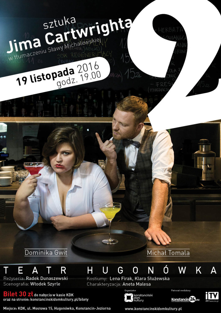 19 listopada o godz. 19.00 zapraszamy na spektakl „2”. Miejsce: KDK Hugonówka. Bilety w cenie 30 zł. Szczegóły na plakacie: