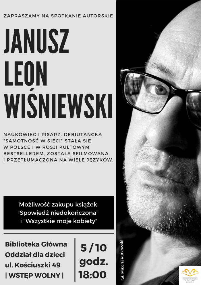 Zapraszamy na spotkanie autorskie z Januszem Leonem Wiśniewskim w piątek 5 października, godz. 18.00, Biblioteka Główna, Oddział dla dzieci, ul. Kościuszki 49.