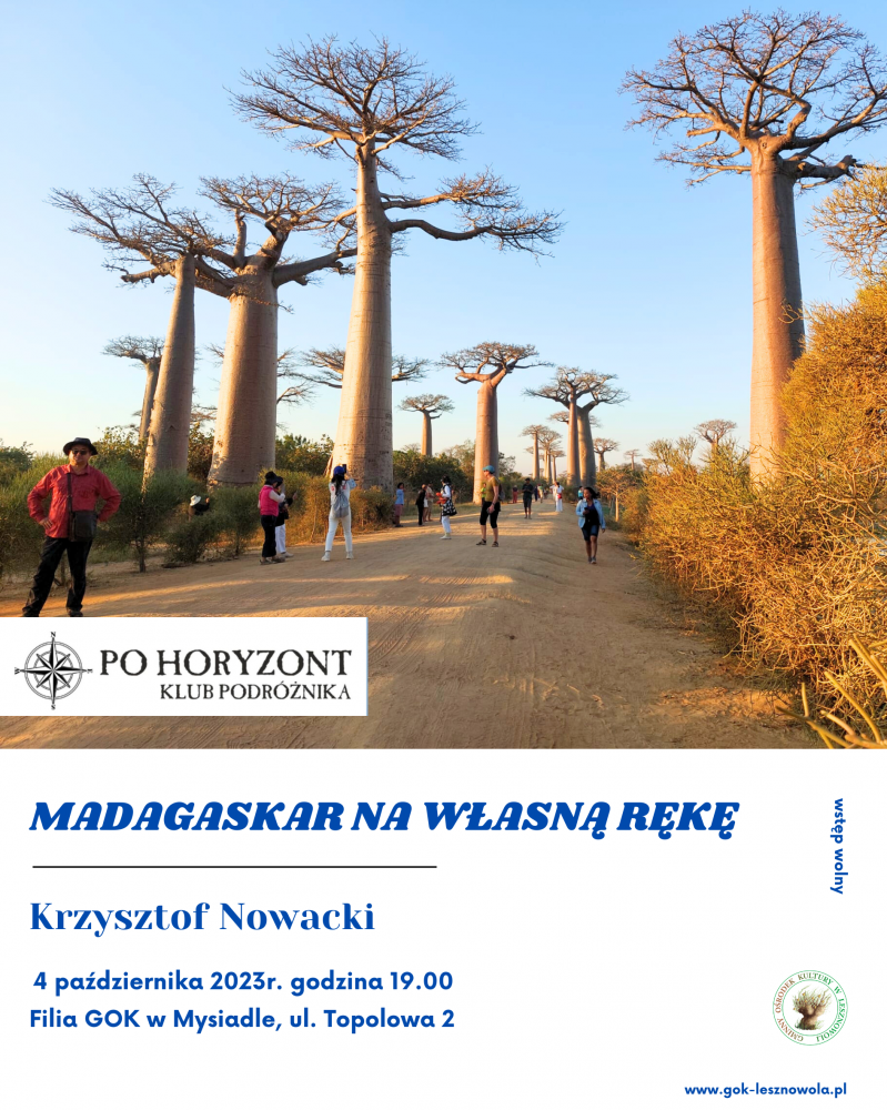 Zapraszamy na kolejne spotkanie Klubu Podróżnika- "Madagaskar na własną rękę, które odbędzie się 4 października o godzinie 19:00 w filii GOK w Mysiadle przy ulicy Topolowej 2.