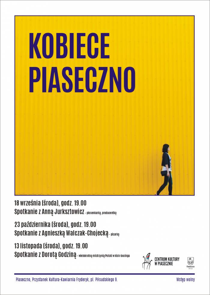 18 września (środa), godz. 19:00 KOBIECE PIASECZNO. Spotkanie z Anną Jurksztowicz, piosenkarką i producentką muzyczną. Miejsce: Piaseczno, Przystanek Kultura, pl. Piłsudskiego 9. Wstęp wolny.