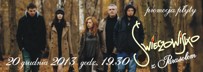 20 grudnia 2013 roku zapraszamy na Świeczowisko. Tym razem organizatorzy zapraszają na promocja płyty PARASOL POETICA na rzecz Fundacji Pomóż dorosnąć . Miejsce: Sala Domu Kultury, ul. Kościuszki 49, Piaseczno. Zapraszamy do Centrum Kultury.