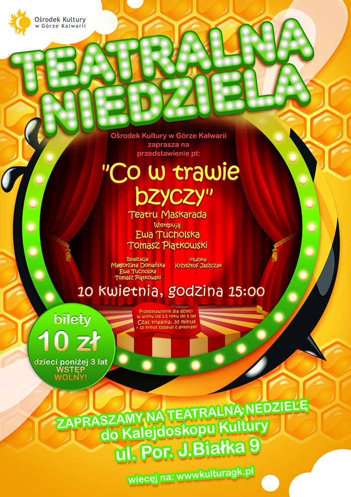 10 kwietnia 2016 r. o godz. 15.00 zapraszamy na Teatralną Niedzielę do Góry Kalwarii.