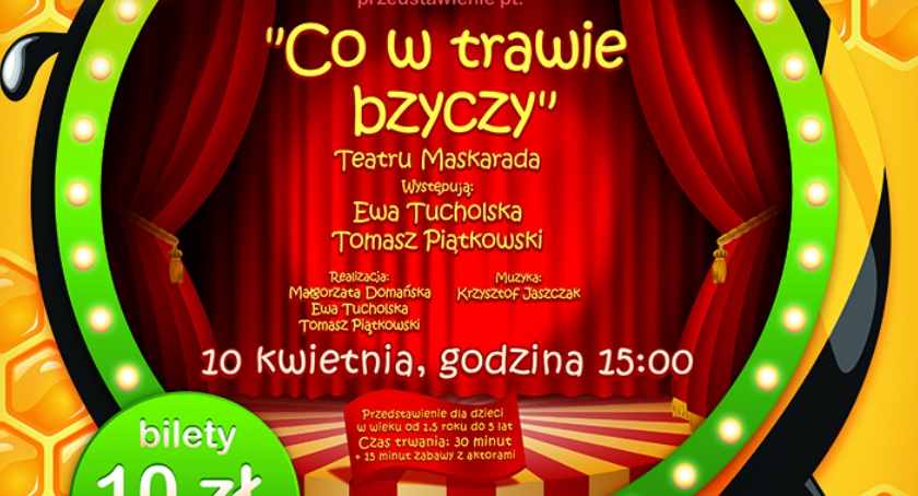 Zapraszamy najmłodszych na kameralny spektakl, który dzieje się na łące. Dzieci spotkają w jego trakcie pszczółki, ślimaczki, motylki i pajączki. Aktorzy wciągają małych widzów do teatralnej zabawy. Przedstawienie jest interaktywne. Przedstawienie dla dzieci w wieku od 1,5 roku do 5 lat. Wstęp: 10 zł