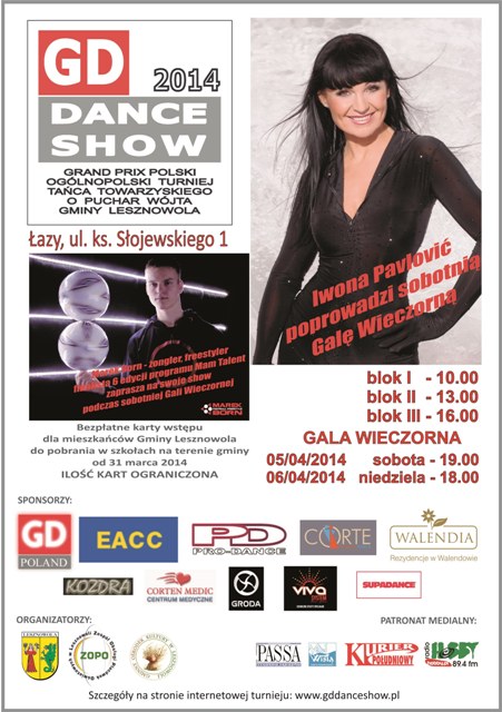 5-6 kwietnia 2014 roku odbędzie się coroczny Ogólnopolski Turniej Tańca o Puchar Wójta Gminy Lesznowola GD DANCE SHOW, Grand Prix Polski Dorosłych oraz Młodzieży w stylach ST i LA. Sala sportowa ZS w Łazach, ul. Ks. Słojewskiego 1. Bezpłatne karty wstępu dla mieszkańców gminy Lesznowola do pobrania w sekretariatach szkół.
