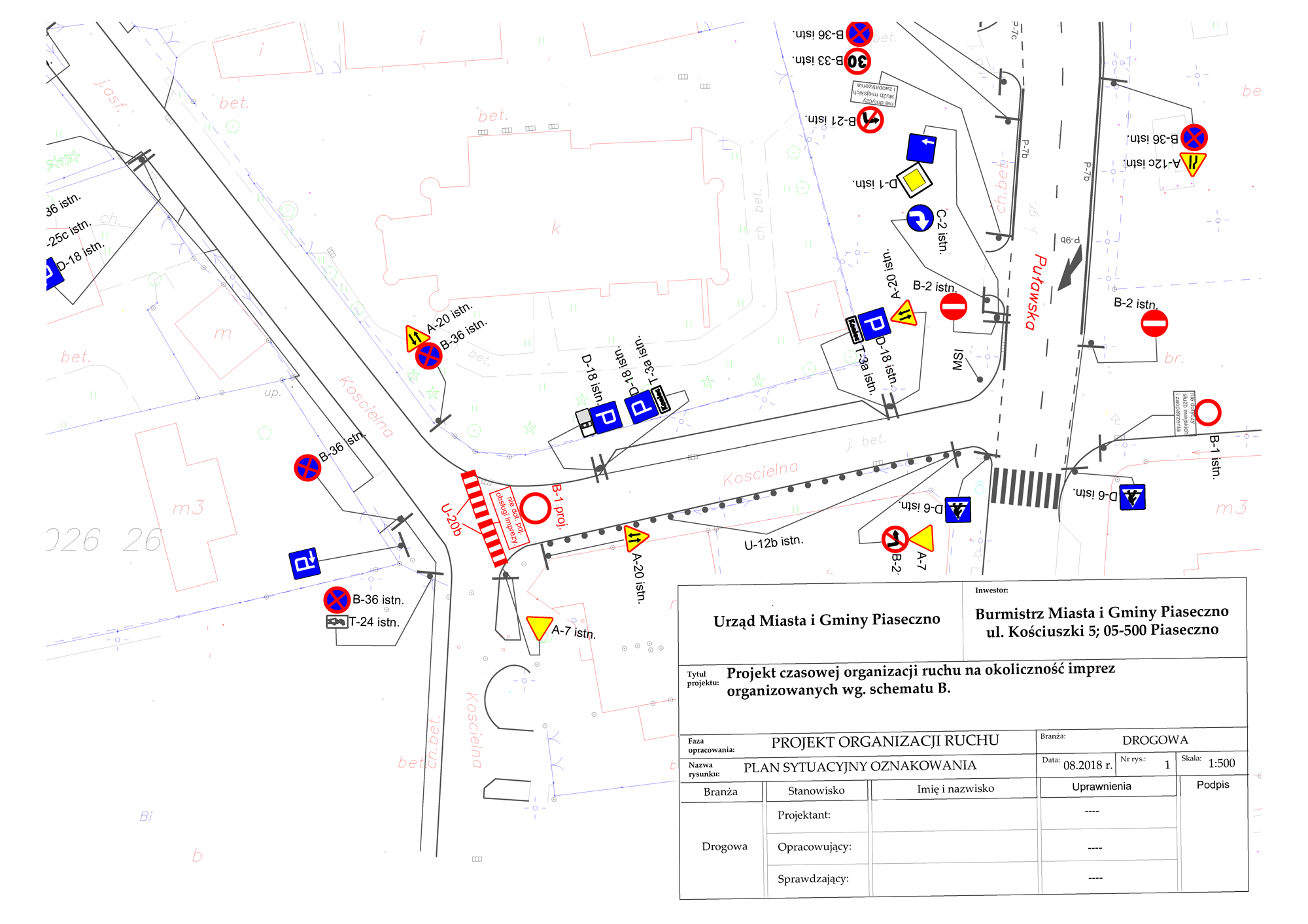 Ruch z ul. Puławskiej poprowadzony zostanie ulicą Chyliczkowską do DK79 oraz ul. Jana Pawła II do Wojska Polskiego. Na czas zamknięcia zostaną wyłączone z ruchu przystanki autobusowe: przy Sądzie oraz na ul. Sienkiewicza. Komunikacja miejska kursowała będzie objazdem przez ul. Wojska Polskiego. W trakcie zamknięcia wyłączone z ruchu zostają miejsca postojowe wzdłuż ul. Kościuszki, pod kościołem oraz w łączniku ul. Kościelnej z Kościuszki.