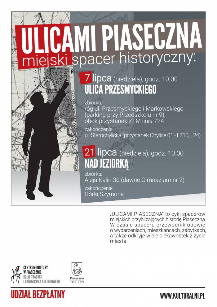 7 lipca (niedziela), godz. 10:00 odbędzie się spacer z przewodnikiem z cyklu: ULICAMI PIASECZNA. MIEJSKI SPACER HISTORYCZNY. Tematem będzie ulica Przesmyckiego.