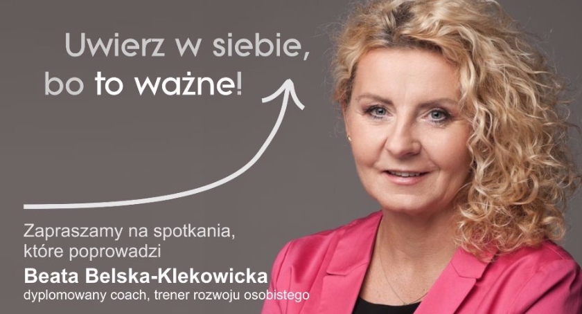 W czwartek 17.11.2016 r. o godz. 18.00 odbędzie się bardzo ciekawe spotkanie pt. "Uwierz w siebie, bo to ważne" z Beatą Klekowicką - coach. Miejsce: filia GOK Lesznowola w Nowej Iwicznej, ul. Zimowa 25 c.