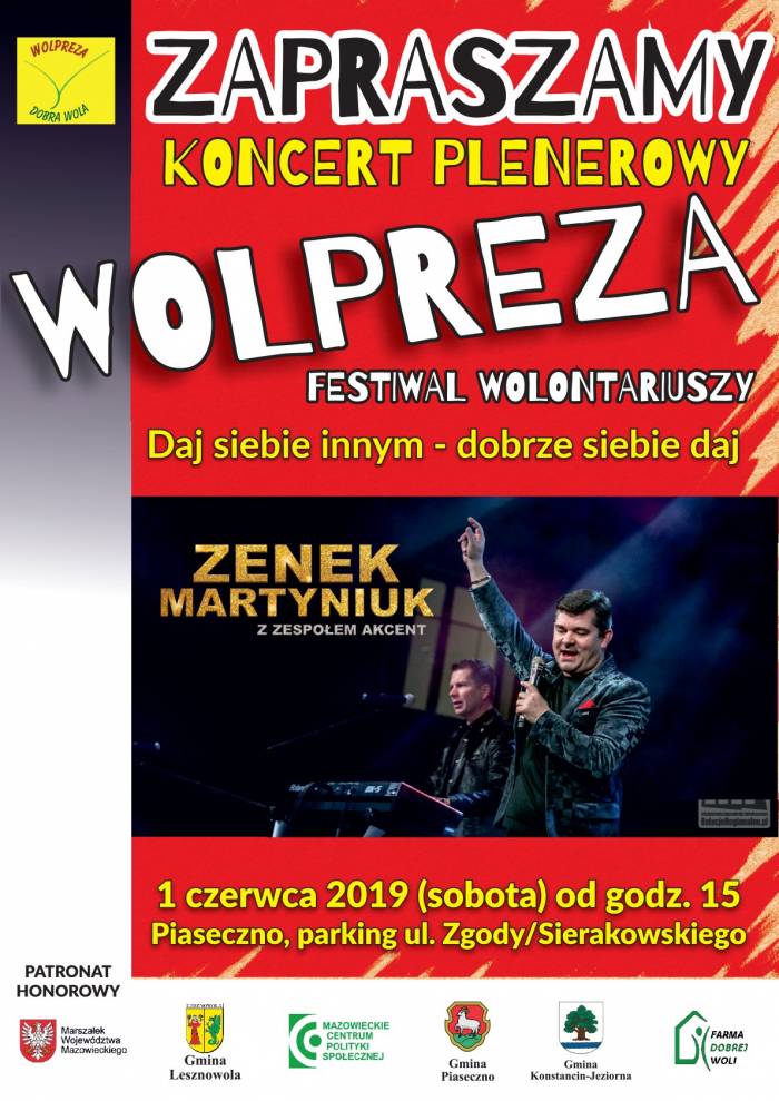 Stowarzyszenie Dobra Wola OPP z Partnerami zapraszają: koncert dla wszystkich, co są, byli, lub będą wolontariuszami z jednym takim Zenkiem w tle. Wspieramy Farmę Dobrej Woli, wręczamy Anioły Dobrej Woli, świętujemy Dzień Wszystkich Dzieci od 0 do 110 lat, bawimy się bo jesteśmy pełni radości, akceptujemy wszystkich.