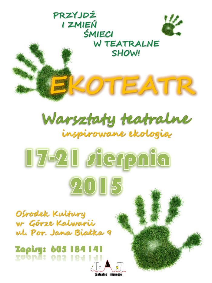 17-21 sierpnia 2015 roku odbędą się warsztaty teatralne EKOTEATR. Miejsce: Kalejdoskop Kultury, ul. por. J. Białka 9. Więcej informacji na plakacie.
