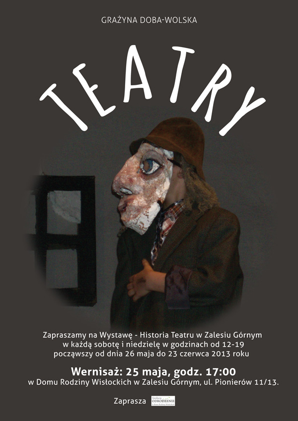 25 maja 2013 roku o godz. 17:00 w Fundacji Odrodzenie odbędzie się wernisaż Grażyny Doba-Wolskiej pt. TEATRY. W programie uroczystości fragmenty przedstawień na dwóch scenach.