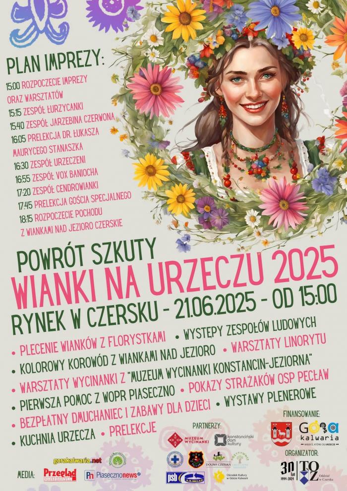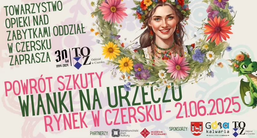 W imieniu Towarzystwa Opieki nad Zabytkami Oddział w Czersku zapraszamy na imprezę “Wianki na Urzeczu 2025”. Będziemy bawić się na historycznym rynku w Czersku w sobotę - 21.06.2025 r. od godziny 15:00.