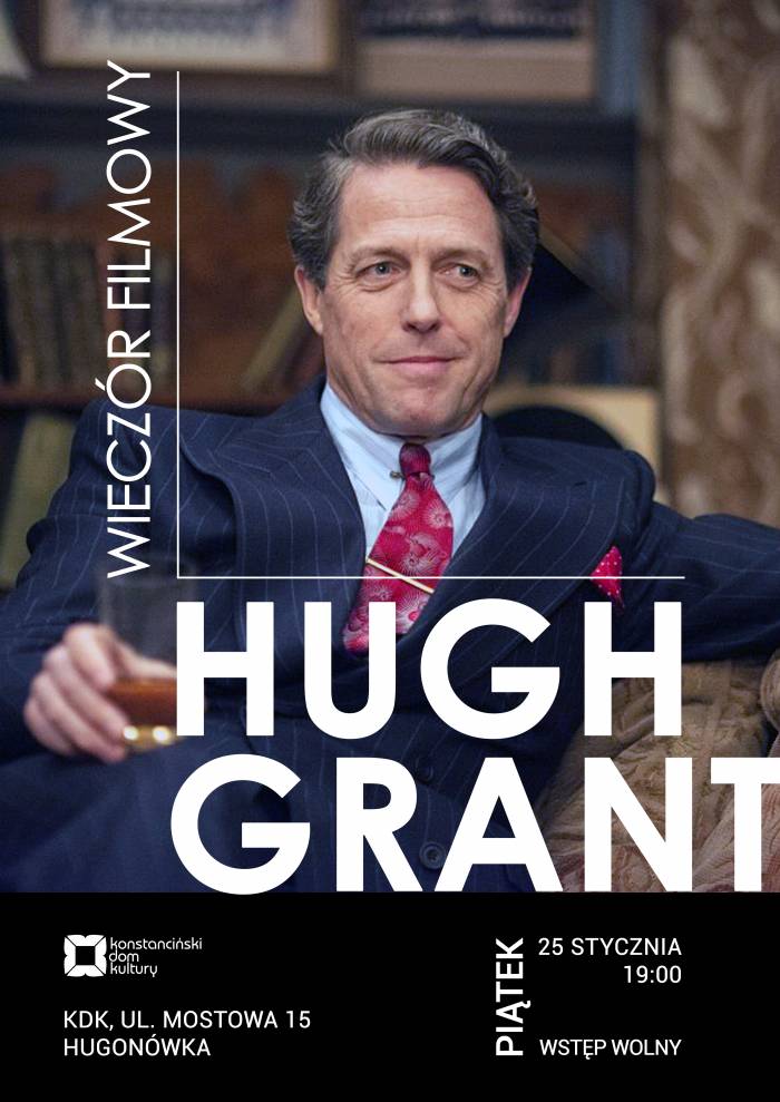 Konstanciński Dom Kultury przy ul. Mostowej 15 w piątek, 25 stycznia o godz. 19 zaprasza na wieczorny seans filmu z Hugh Grantem w roli głównej. Jeden z najpopularniejszych brytyjskich aktorów filmowych i teatralnych. Światową sławę przyniosła mu rola w przeboju kinowym „Cztery wesela i pogrzeb” z 1994 roku. Ekranowy amant, bożyszcze kobiet. Gwiazda popularnych komedii romantycznych, ale ma na koncie także wiele dramatycznych ról u najlepszych reżyserów. W Hugonówce zostanie wyświetlony film-niespodzianka. KDK może jedynie zdradzić, że Hugh Grant partneruje w nim rozśpiewanej, „boskiej” Meryl Streep. Wstęp wolny.