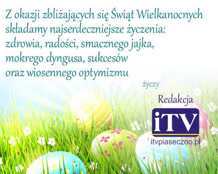 Z okazji zbliżających się Świąt Wielkanocnych składamy najserdeczniejsze życzenia: zdrowia, radości, smacznego jajka, mokrego dyngusa, sukcesów oraz wiosennego optymizmu. Życzy Redakcja iTV Piaseczno