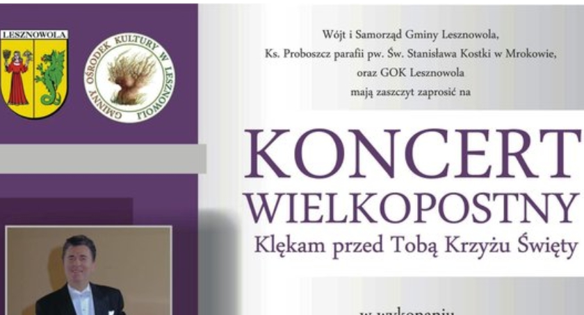 6.03.2016 r. o godz. 19.00 (po wieczornej Mszy Św.) odbędzie się Wielkopostny Koncert Muzyki Sakralnej "Klękam przed Tobą Krzyżu Święty" w wykonaniu barytona Andrzeja Batora i Kwartetu Warszawskiej Orkiestry Symfonicznej SONATA im. Bogumiła Łepeckiego. Kultura żywego słowa w wykonaniu Jacka Łepeckiego. Miejsce: kościół w Mrokowie.