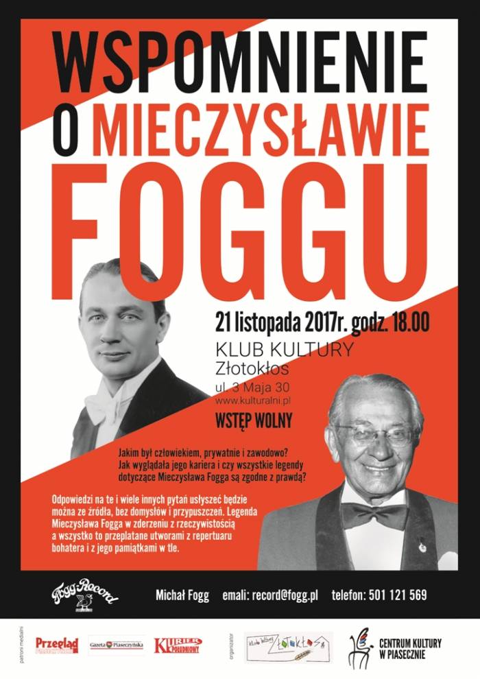 21 listopada o godz. 18.00 zapraszamy na wieczór poświęcony twórczości Mieczysława Fogga. Spotkanie odbędzie się w Złotokłosie w Klubie Kultury przy ul. 3 Maja 30. Wstęp wolny.