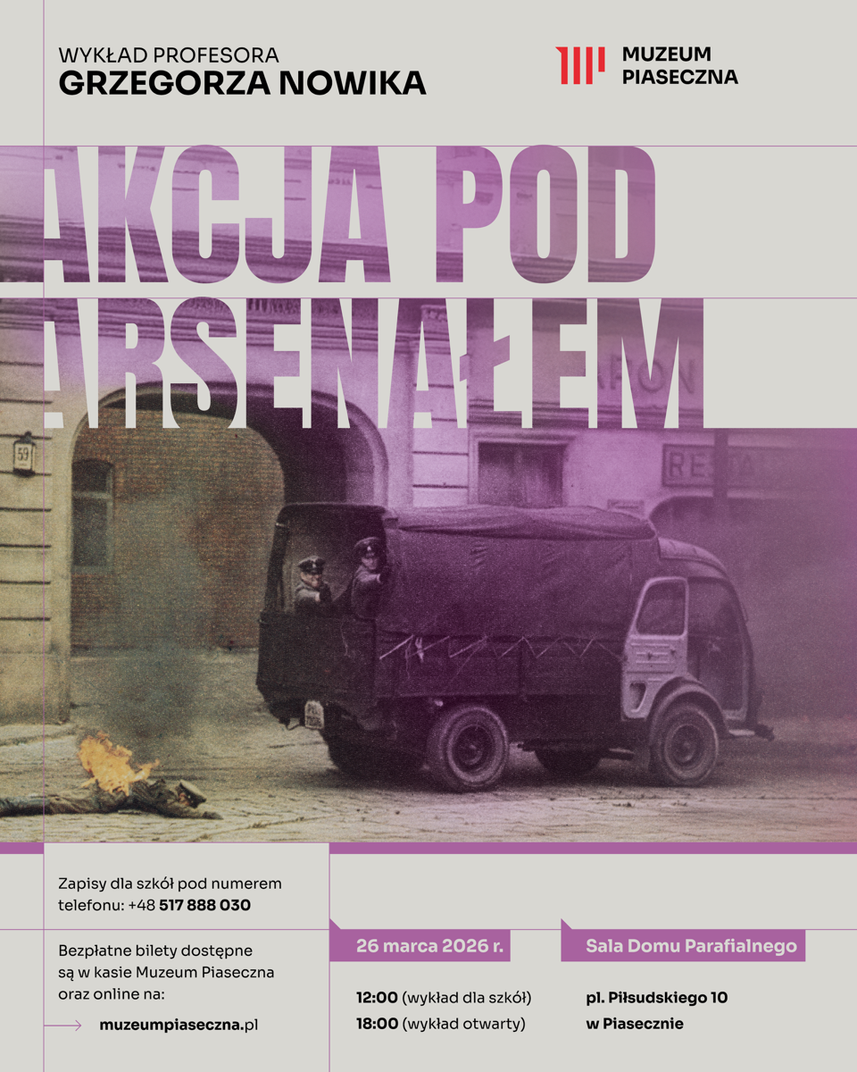 26 marca 2026 roku Muzeum Piaseczna zaprasza na wykład prof. Grzegorza Nowika poświęcony jednej z najbardziej znanych i symbolicznych akcji zbrojnych Polskiego Państwa Podziemnego – Akcji pod Arsenałem. Spotkanie odbędzie się w sali Domu Parafialnego w Piasecznie przy pl. Piłsudskiego 10 o godz. 12.00 i 18.00.