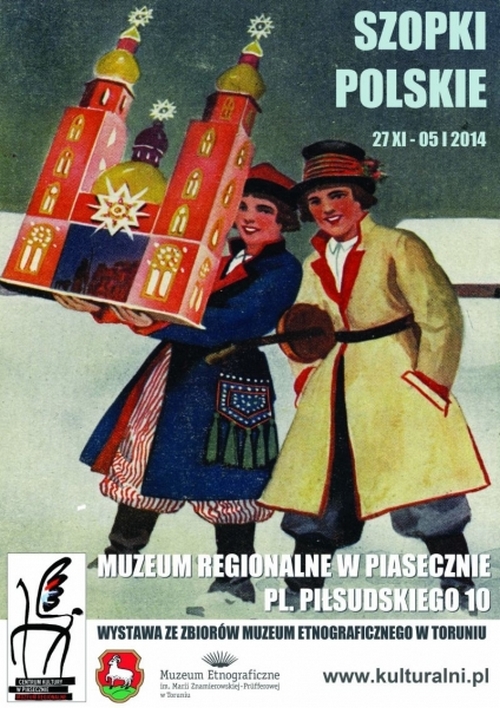 Od 27 listopada do 5 stycznia zapraszamy do Muzeum Regionalnego w Piasecznie na wystawę Szopki Polskie. Wystawa została przygotowana ze zbiorów Muzeum Etnograficznego im. Marii Znamierowskiej-Prüfferowej w Toruniu. Głównym jej celem jest prezentacja różnego rodzaju szopek, tych stanowiących rekwizyt obrzędu kolędowania, jak i szopek zwanych "krakowskimi". Pokazane też będą szopki rzeźbiarskie oraz obrazy nawiązujące do tematu wystawy współczesnych artystów ludowych. Wystawę uzupełnią fotografie archiwalne i ryciny, głównie ze zbiorów własnych MET (także z Muzeum Tatrzańskiego w Zakopanem), jak i reprodukcje z publikacji.