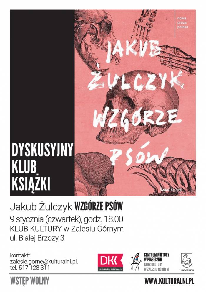 9 stycznia, godz. 18:00 odbędzie się spotkanie w ramach cyklu DYSKUSYJNY KLUB KSIĄŻKI w Zalesiu Górnym, podczas którego omawiana będzie książka Wzgórze Psów. Miejsce: Klub Kultury w Zalesiu Górnym ul. Białej Brzozy 3, Zalesie Górne. Wstęp wolny. Przyjdź na spotkania dla miłośników literatury.