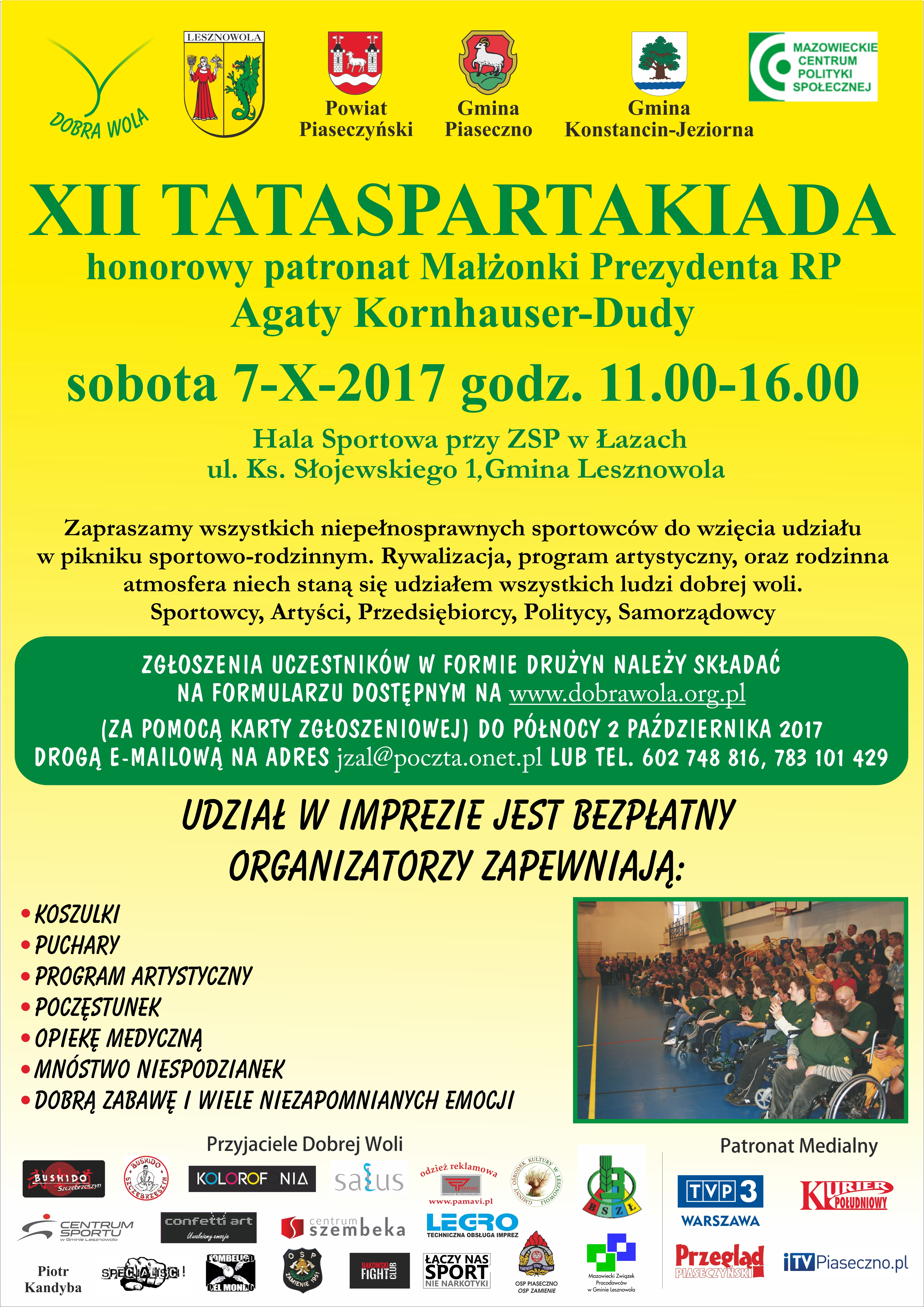 7 października 2017 roku odbędzie się XII Tataspoartakiada Dobrej Woli 2017. Zapraszamy w imieniu organizatorów. Szczegóły na plakacie: