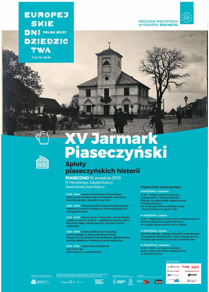 15 września (niedziela), godz. 12:00 – 21:00 odbędzie się XV JARMARK PIASECZYŃSKI. SPLOT PIASECZYŃSKICH HISTORII. W tym roku Piaseczno obchodzi jubileusz 590-lecia nadania praw miejskich. Tegoroczną edycję „Jarmarku Piaseczyńskiego” w całości poświęcamy dziedzictwu i historii naszego miasta.