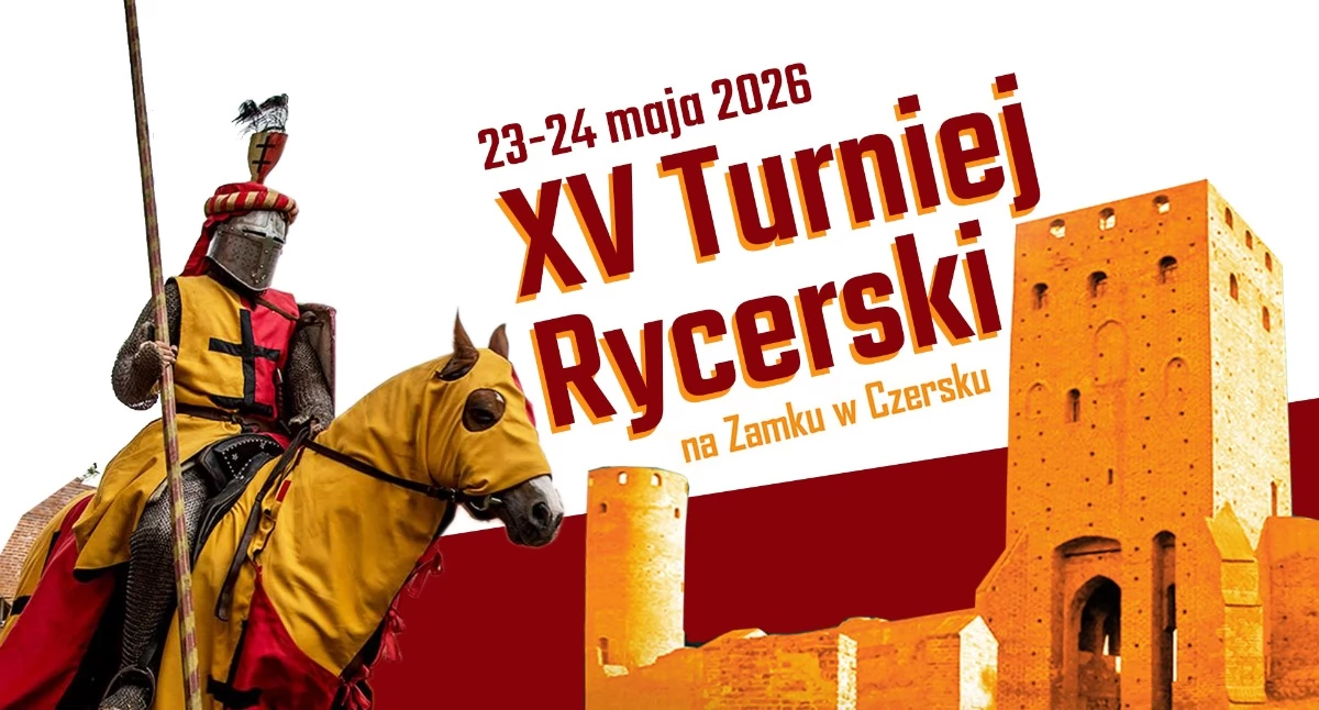 Waleczni Rycerze, Czcigodne Damy, Drodzy Goście! Wieść niesie po całym księstwie – XV Turniej Rycerski na Zamku w Czersku odbędzie się już 23-24 maja 2026 roku.