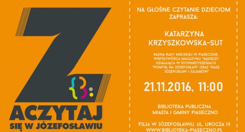 21 listopada 2016 roku o godz. 11.00 odbędzie się spotkanie w ramach cyklu Zaczytaj się w Józefosławiu, podczas którego Katarzyna Krzyszkowska-Sut będzie głośno czytała książkę dzieciom. Szczegóły na plakacie powyżej.