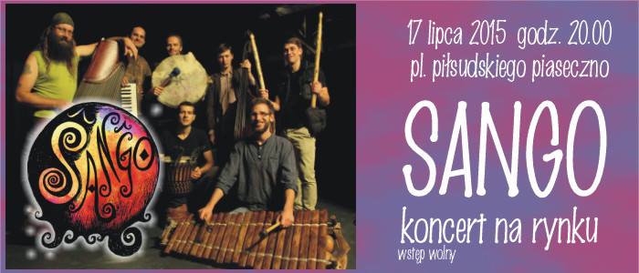 W ramach "Rynku muzycznego" zapraszamy w piątek 17 lipca na koncert zespołu Sango. Występ oczywiście odbędzie się na scenie plenerowej na miejskim rynku o godz. 20.00.