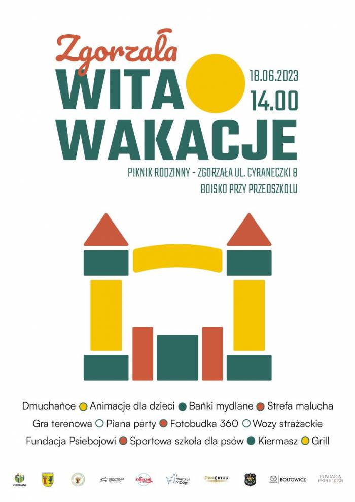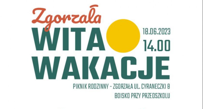 18 czerwca 2023 r. o godzinie 12.00 odbędzie się piknik rodzinny Powitanie wakacji w Zgorzale na boisku przy przedszkolu, ul. Cyraneczki 8.