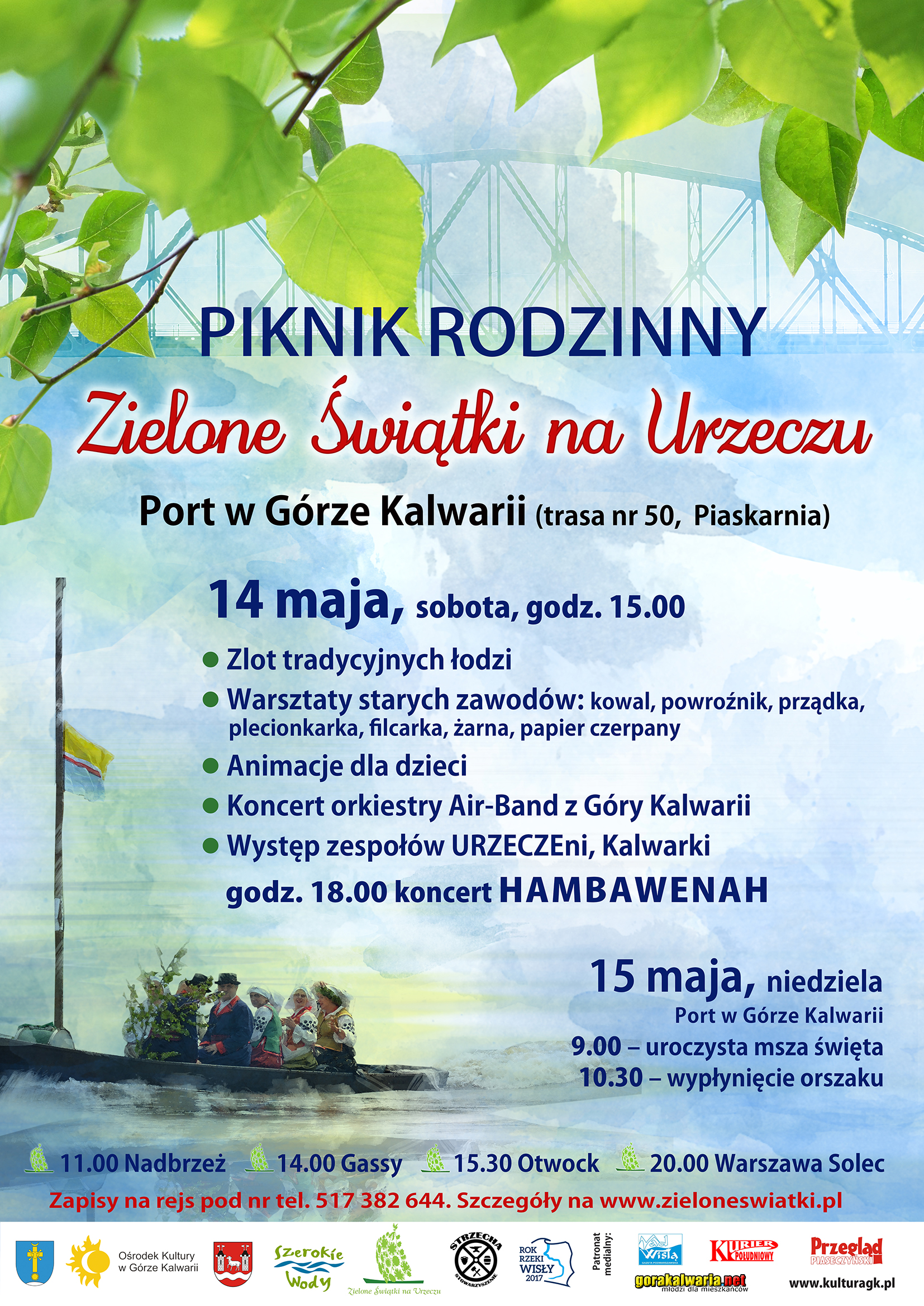 14 maja 2016 roku odbędzie się piknik rodzinny Zielone Świątki na Urzeczu. Miejsce: nadwiślański port w Górze Kalwarii.