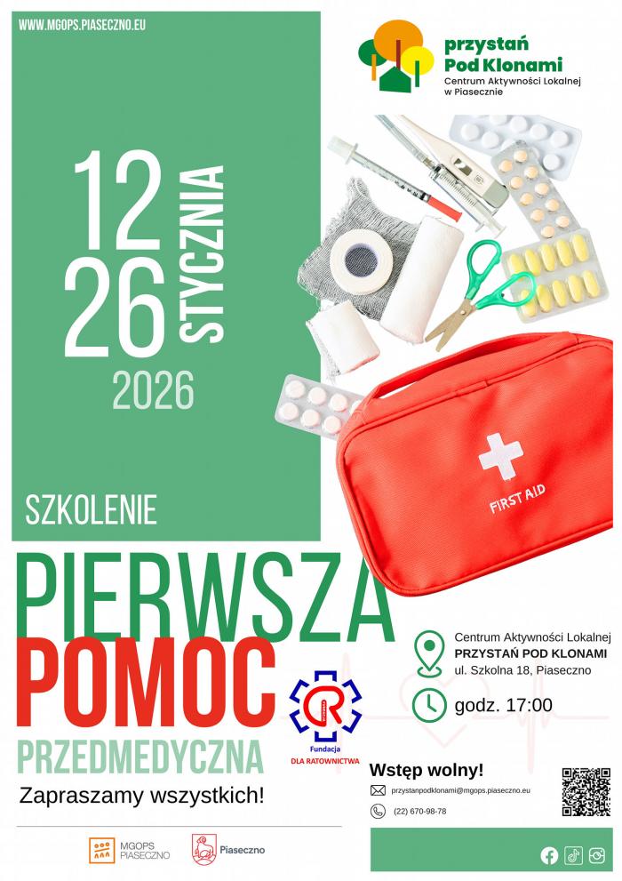 Czy wiesz, jak zachować się, gdy ktoś obok Ciebie nagle potrzebuje pomocy? A czy potrafisz działać szybko i skutecznie, gdy liczy się każda minuta? Już w styczniu mieszkańcy Piaseczna będą mieli wyjątkową okazję, aby zdobyć bezcenną wiedzę i praktyczne umiejętności z zakresu pierwszej pomocy przedmedycznej.