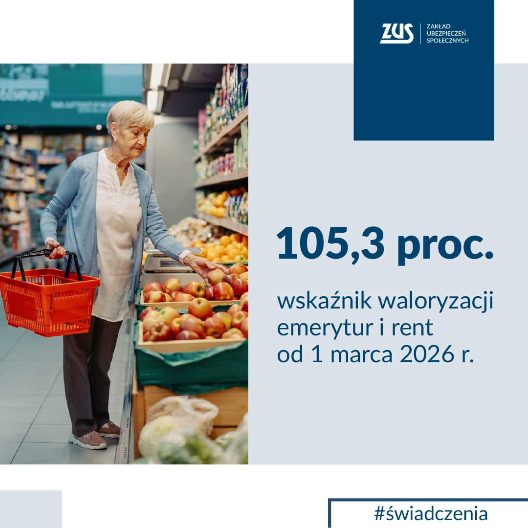 Od 1 marca świadczenia emerytalno-rentowe oraz dodatki wypłacane przez ZUS zostaną zwaloryzowane. Podwyżka będzie przeprowadzana z urzędu, co oznacza, że nie trzeba składać w tej sprawie żadnego wniosku. Świadczenia wzrosną o 5,3 procent.