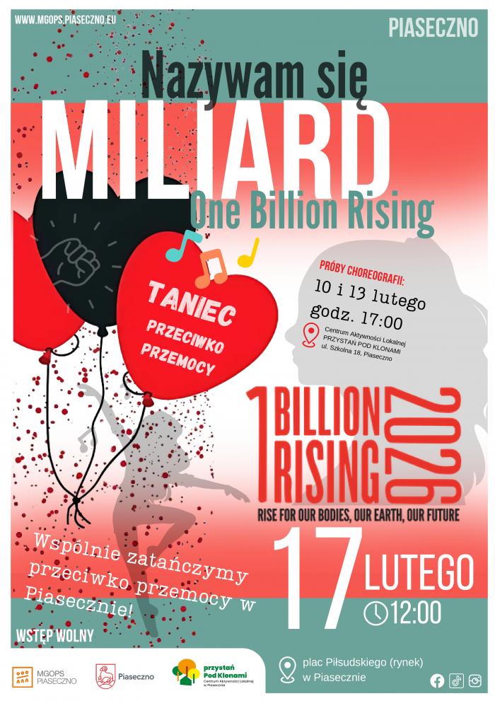 17 lutego 2026 roku o godz. 12.00 odbędzie się wydarzeni One Billion Rising wspólnie przeciwko przemocy w Piasecznie 2026. Miejsce: plac Piłsudskiego w Piasecznie.