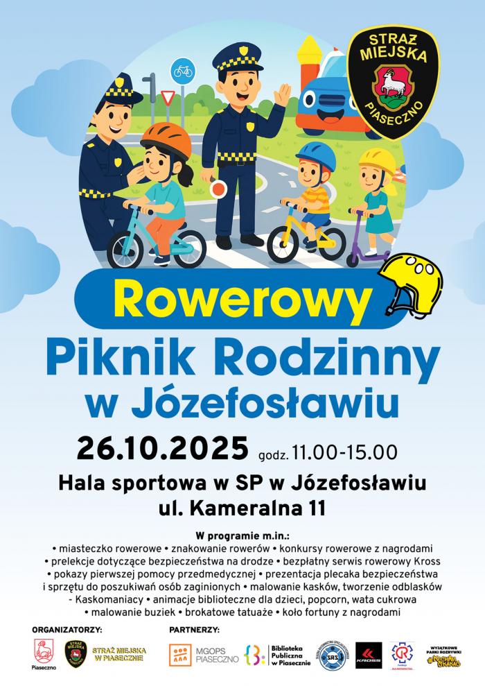 Straż Miejska w Piasecznie wraz z Gminą Piaseczno zapraszają na Rodzinny Piknik Rowerowy, który odbędzie się 26 października 2025 r. (niedziela) w godzinach 11.00–15.00 w Szkole Podstawowej im. Janusza Korczaka w Józefosławiu przy ul. Kameralnej 11.